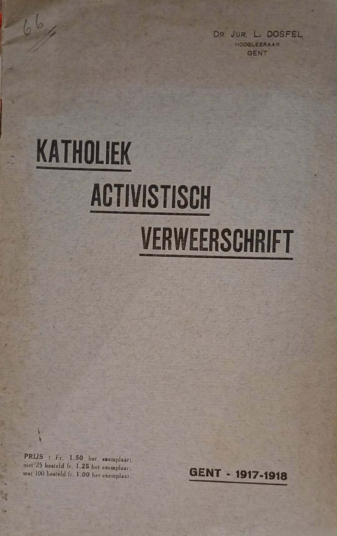 Katholiek Activistisch Verweerschrift door Lodewijk Dosfel - uitgave 1917 / 50 blz - zeldzaam 10,00 € 0,00 €