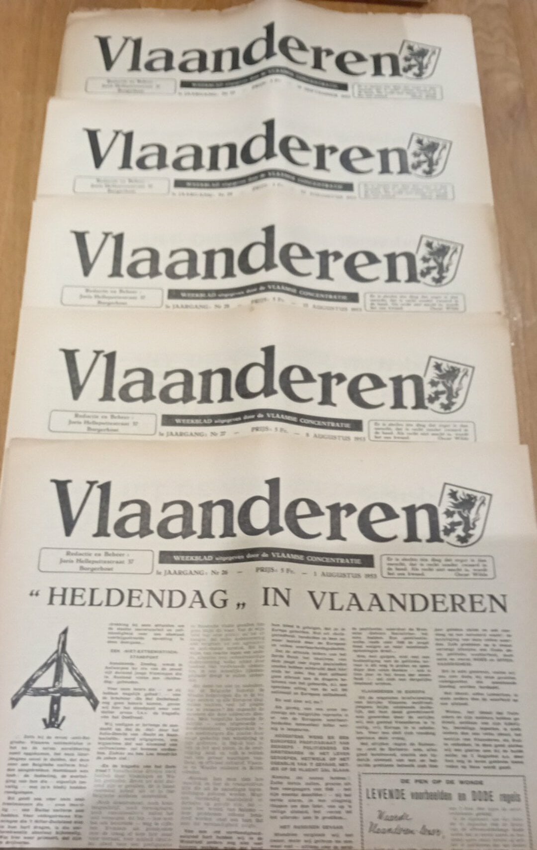 5 nummersvan Het weekblad van de Vlaamse Concentratie VLAANDEREN , allemaal eerste jaargang 1953