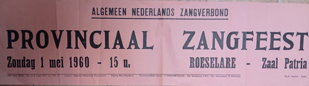 Affiche provenciaal zangfeest Roeselare 1960 / lang formaat