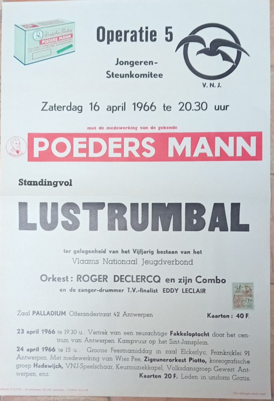Affiche Vlaams Nationaal Jeugdverbond V.N.J. - Lustrumbal 5 jaar V.N.J. - 1966 / 56 x 38 cm