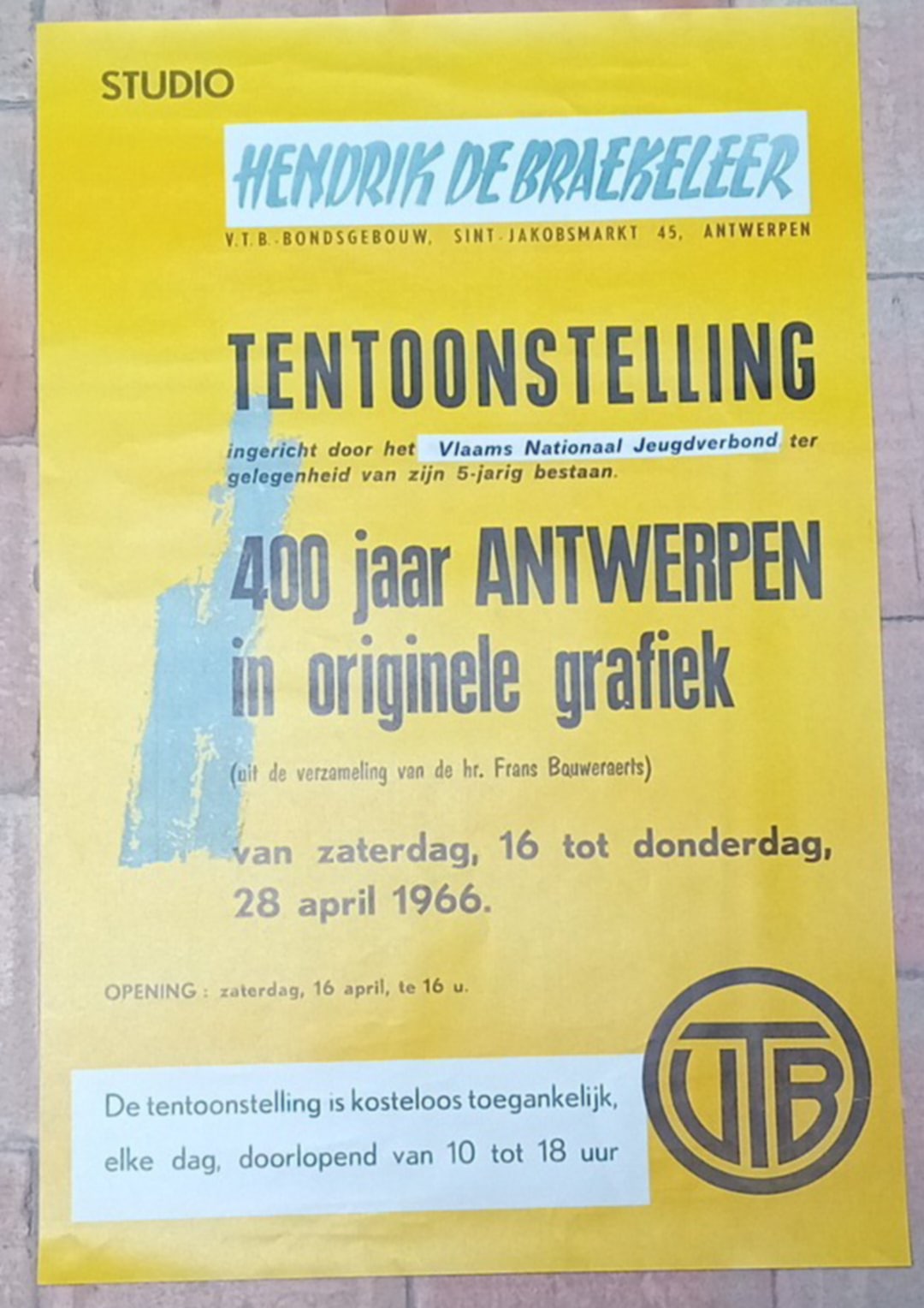 Affiche Vlaams Nationaal Jeugdverbond V.N.J. -Tentoonstelling 400 jaar Antwerpen 1966 / 36 x 55 cm
