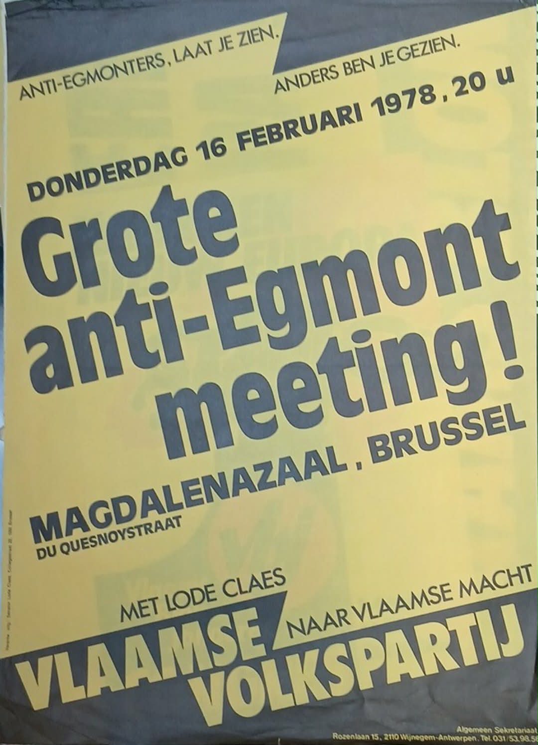 Affiche VVP Vlaamse Volkspartij , voorloper Vlaams Blok - anti Egmontmeeting 1978 / normaal formaat