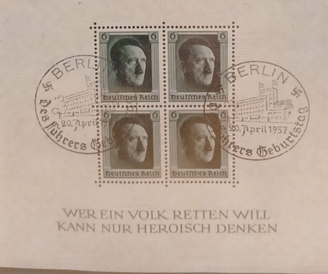 Blok postzegels Adolf Hitler Fuhrersgeburtstag 1937 + 30 inflatiemarken