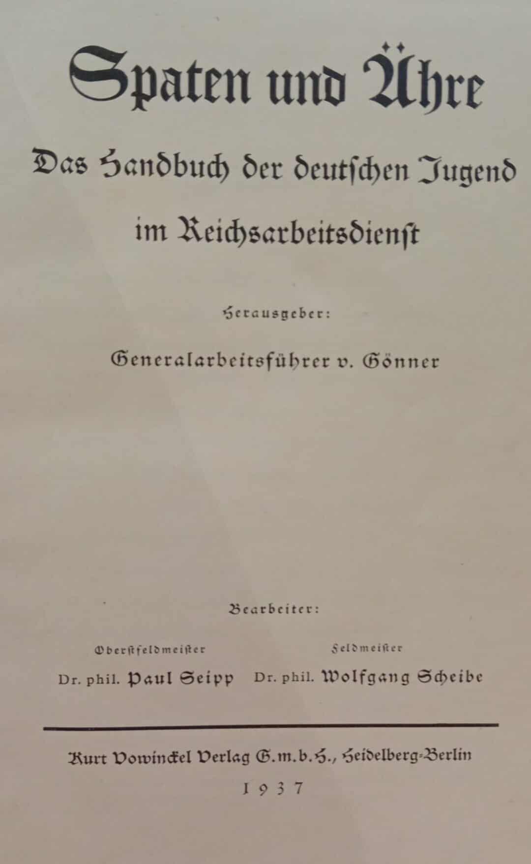 Boek Reichsarbeitsdienst : Spaten und Ahre - uitgave 1937 / 240 blz met foto's Feldhernhalle Munchen