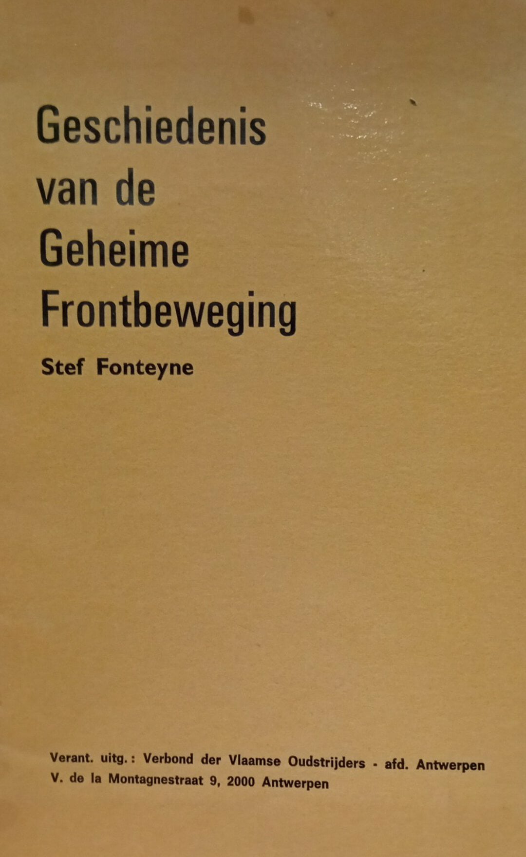 Brochure Geschiedenis van de geheime frontbeweging door Stef Fonteyne - uitgave 1969 / 24 blz