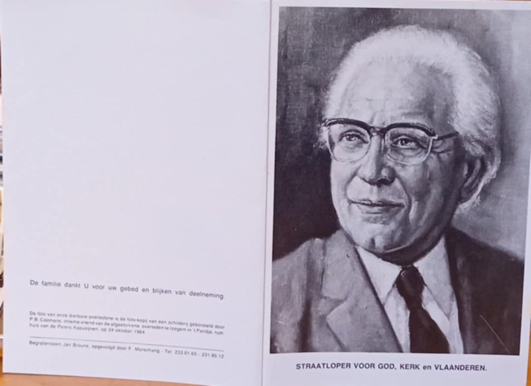 Doodsprentje VNV oorlogsburgemeester van Kontich Frans Tolleneer met foto 1986 / Sint- Maartensfonds