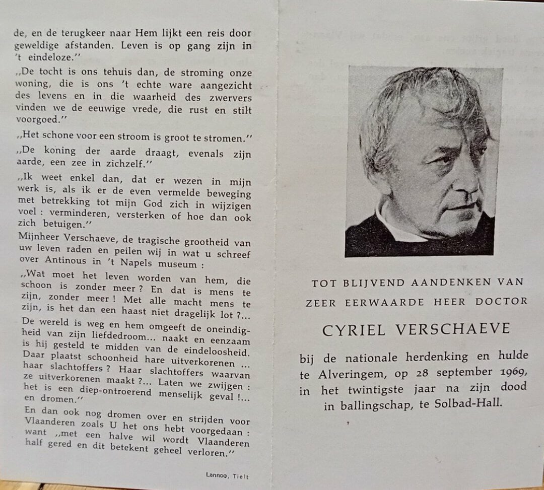 Herdenkingsprentje Cyriel Verschaeve 1969 /Sobad Hall