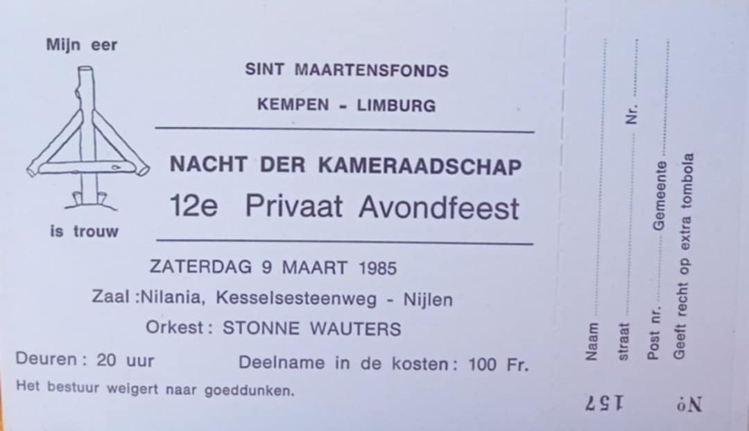 inkomkaart 1985 Kameradenbal Sint-Maartensfonds Kempen Limburg