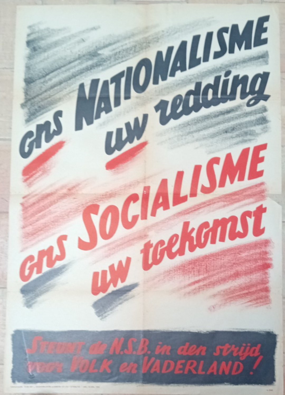 Nederlands Collaboratie affiche N.S.B. - Ons Nationalisme , Ons Socialisme 1944 / 80 x 54 cm - in goede staat