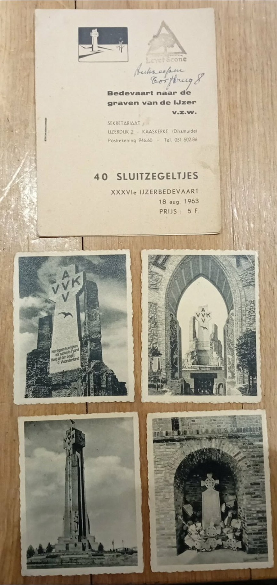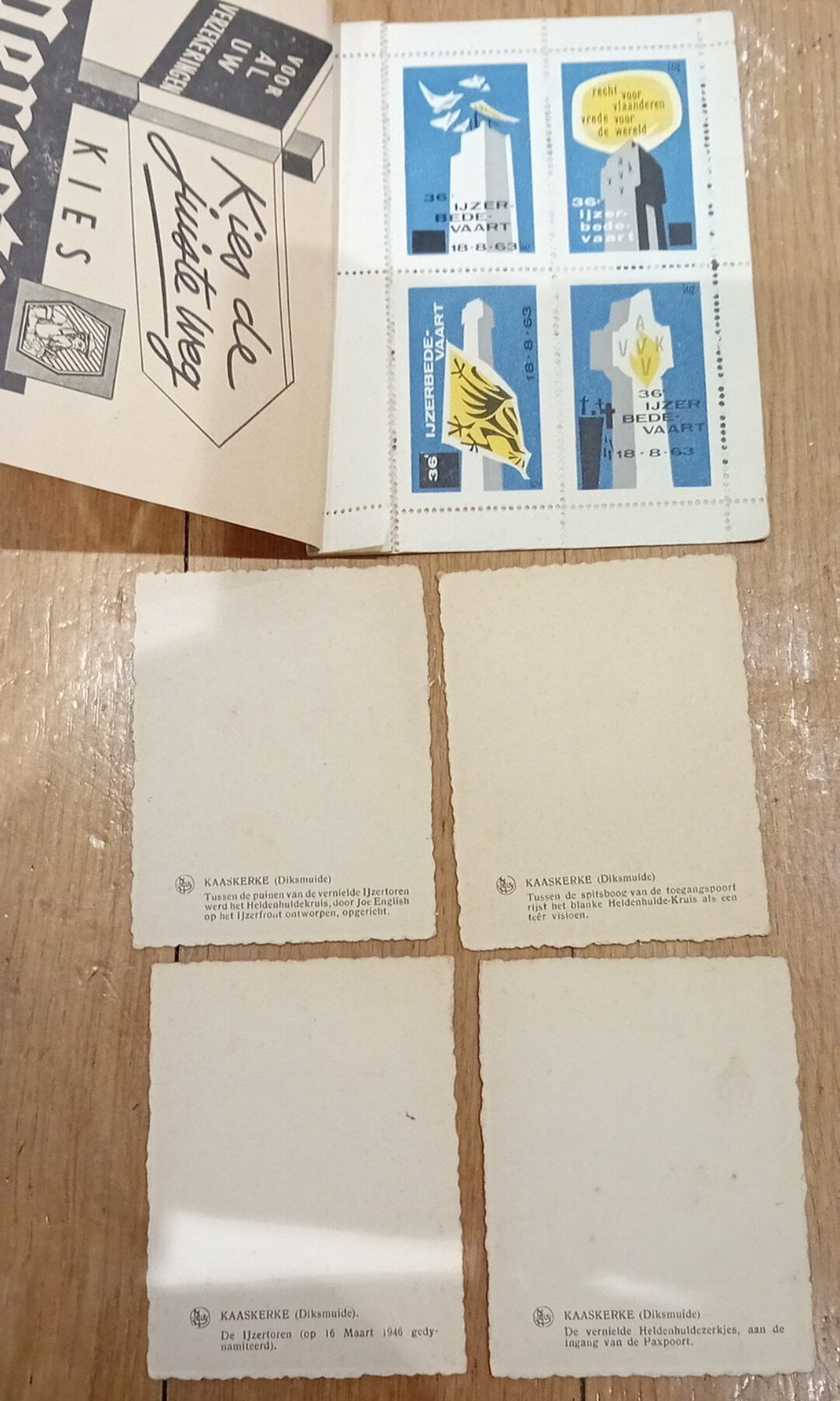 Postkaart IJzerbedevaart Diksmuide - boekje sluitzegels 1963 en vier kleine foto's paxpoort / A 42