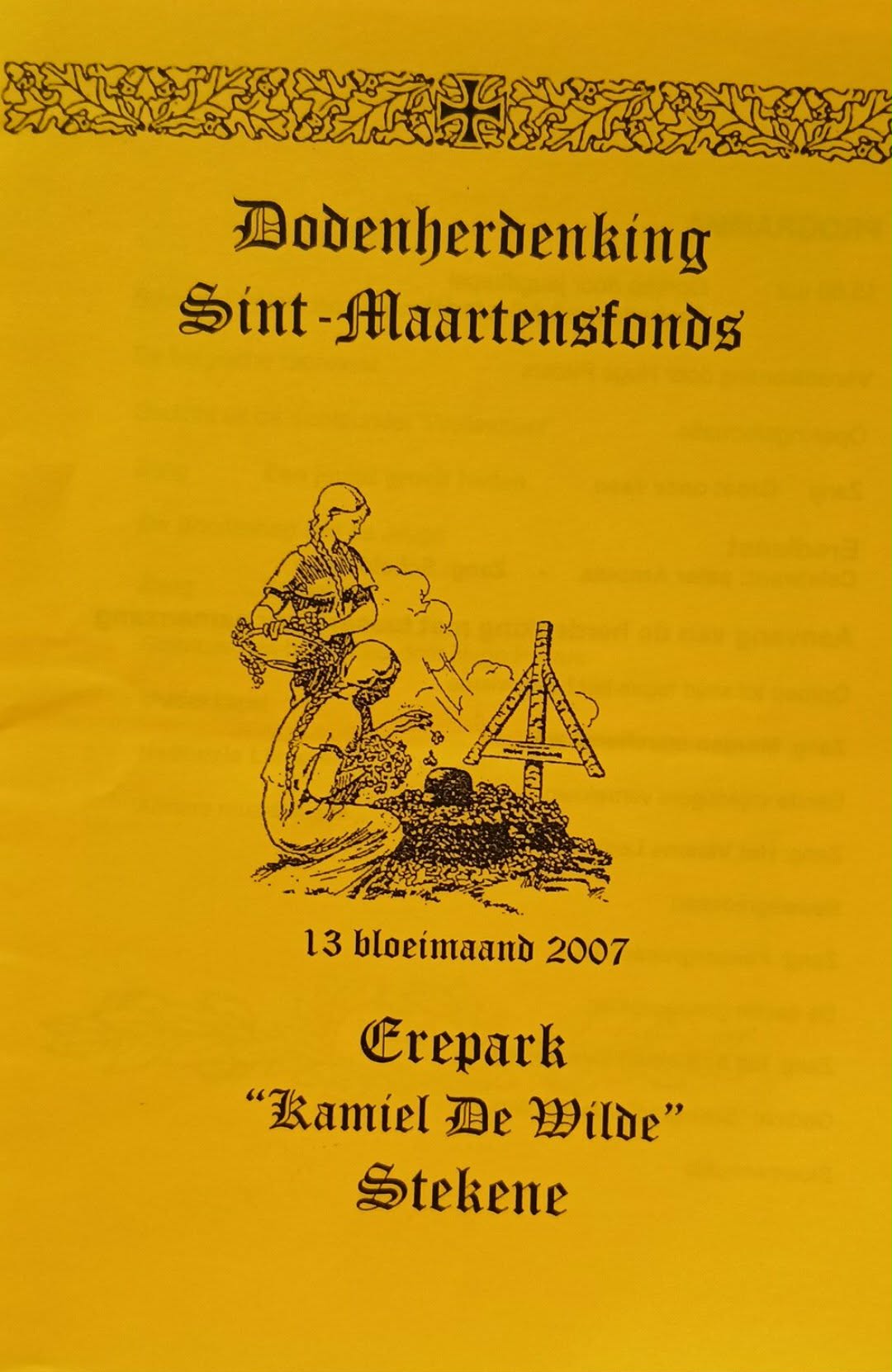 Programma voor de Dodenherdenking op het erepark in Stekene 2007 + - SMF Sint Maartensfonds