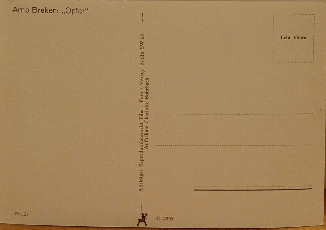 Propagandakaart Derde Rijk Adolf Hitler - Beeldhouwwerk ARNO BREKER - 'opfer'