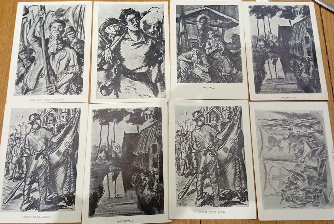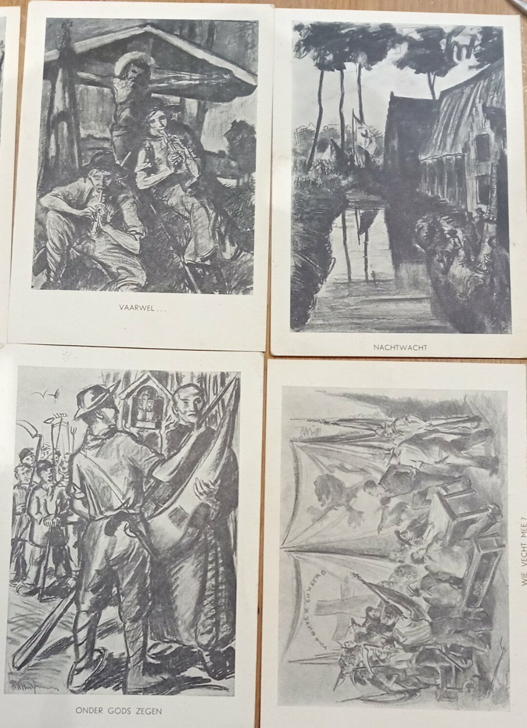Reeks van 6 postkaarten boerenkrijg 1957 , volledig ( 2 dubbele kaarten) / A4