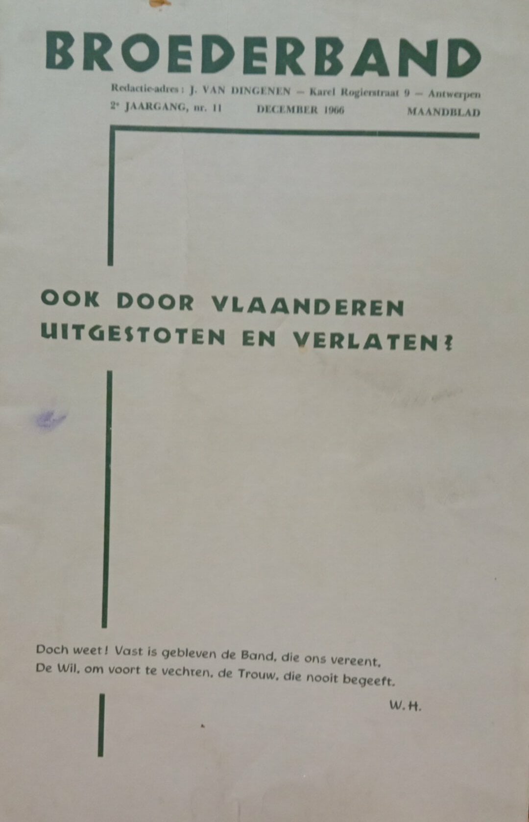 Speciaal nummer BROEDERBAND - Ook door Vlaanderen uitgestoten en verlaten ? - uitgave 1966 / 63 blz