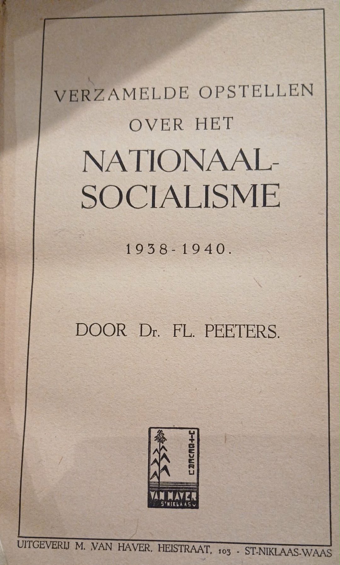 Verzamelde opstellen over het Nationaal Socialisme 1938 - 1940 door Flor Peeters - uitgave 1941 / 146 blz - mooie bibliotheek uitgave !!