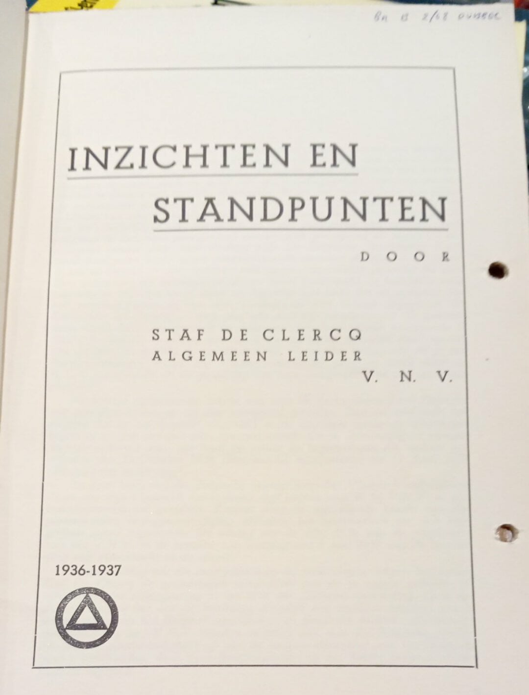 Vlaamse collaboratie Brochure - VNv , inzichten en standpunten door Staf De Clercq - uitgave 1936 / 40 blz - handtekening Antwerps burgemeester Jan Timmermans !!