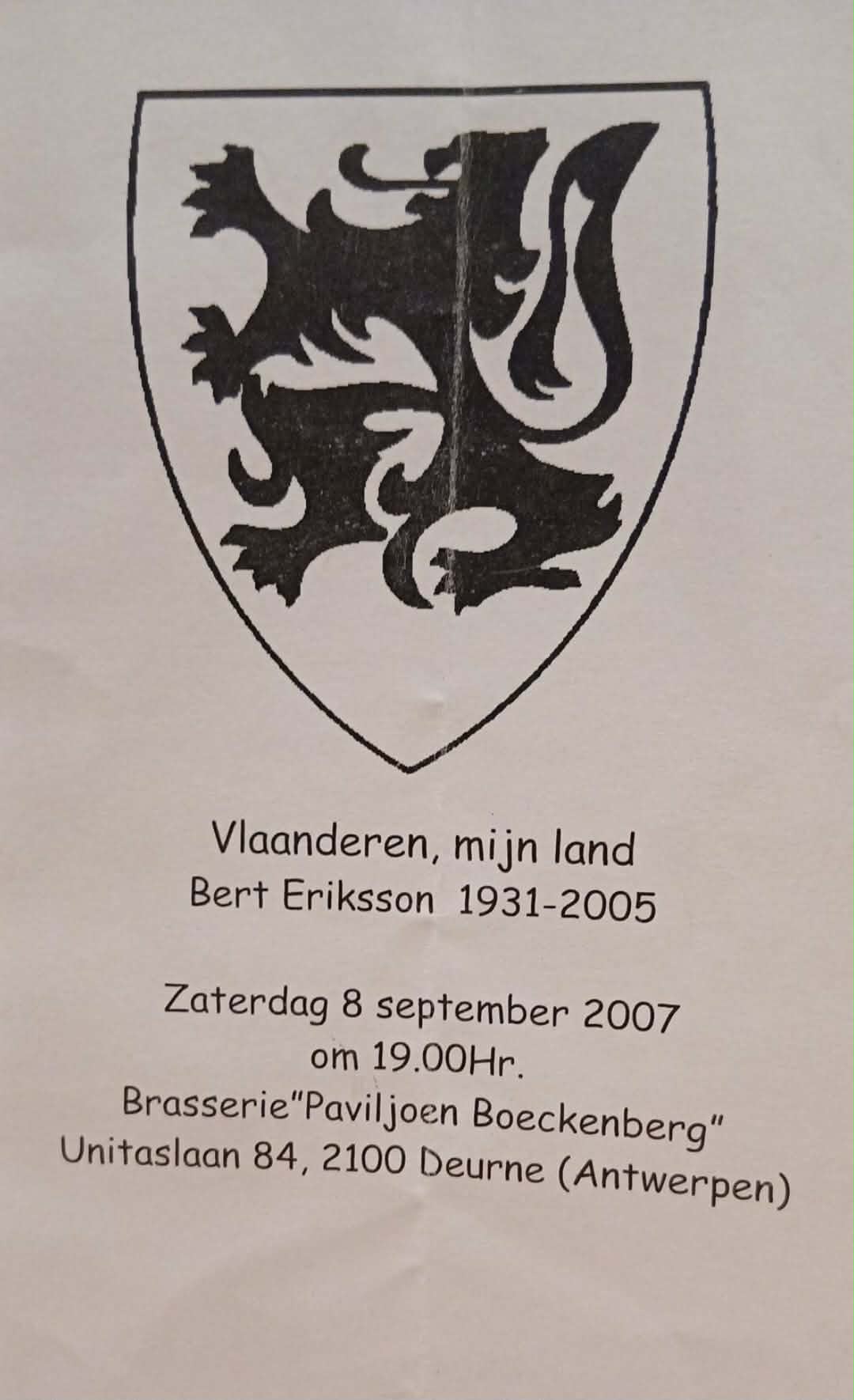 Vlaanderen mijn land , het leven van VMO leider Bert Eriksson door Sven Eriksson - uitgave 2007 / 174 blz met voorstellings brochure