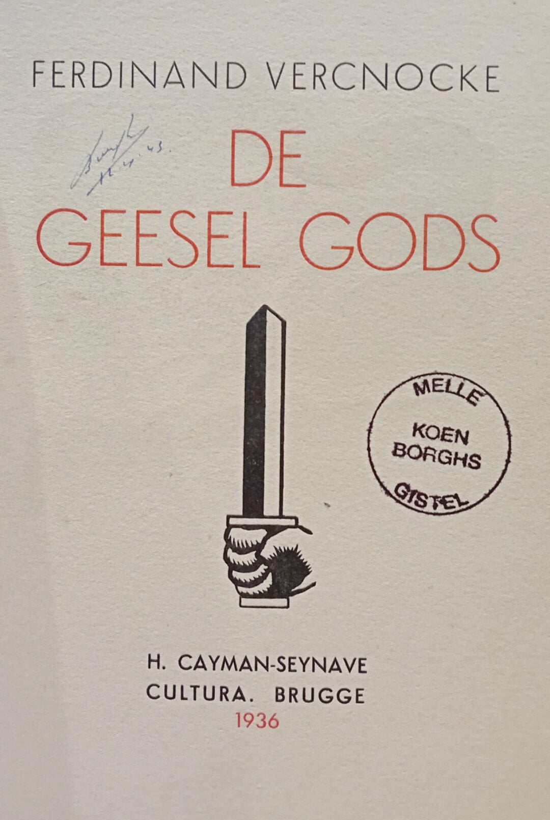 Zeldzaam : De geesel gods door Ferdinand Vercnocke / uitgave 1936 - 67 blz