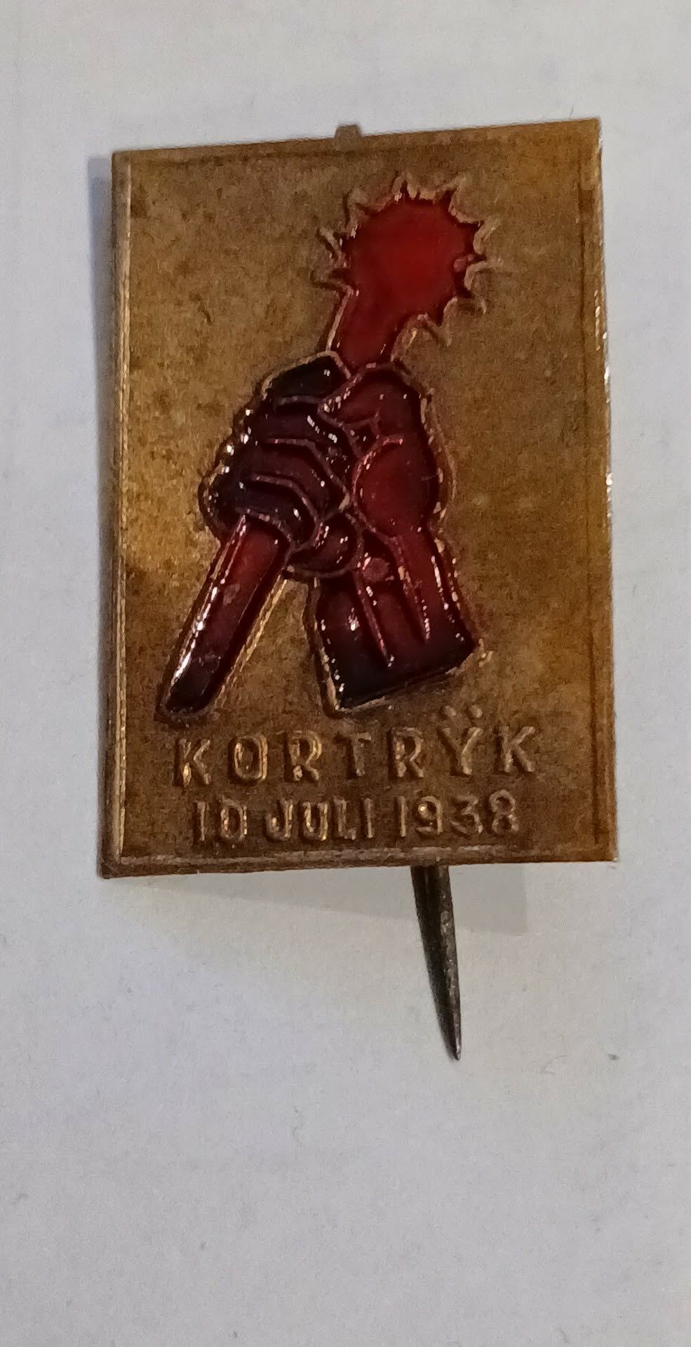 Zeldzaam , deelnemerspin 11 juli viering Kortrijk 1938