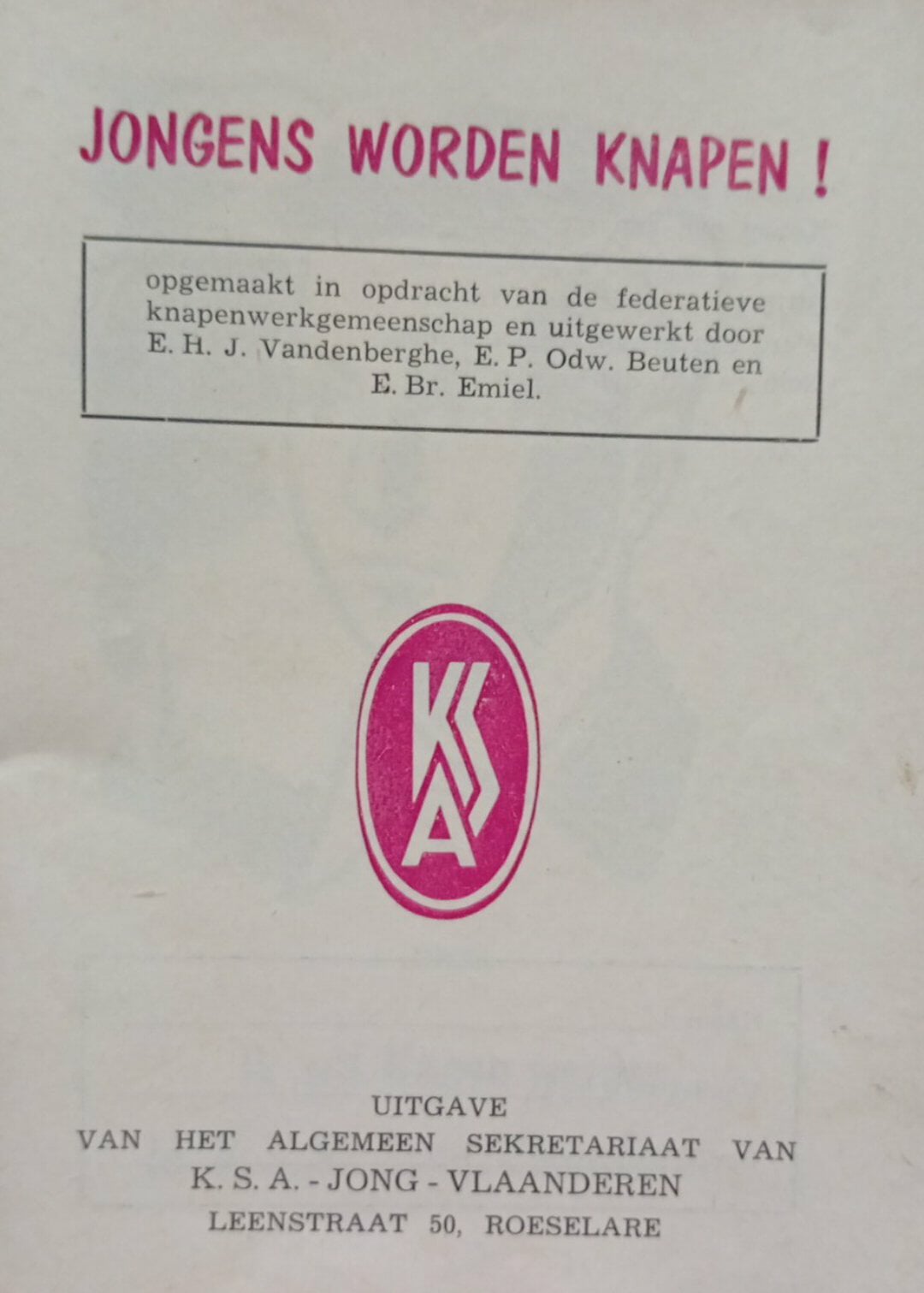 zeldzaam vormingsboeje KSA Jong Vlaanderen 1952 / 132 blz
