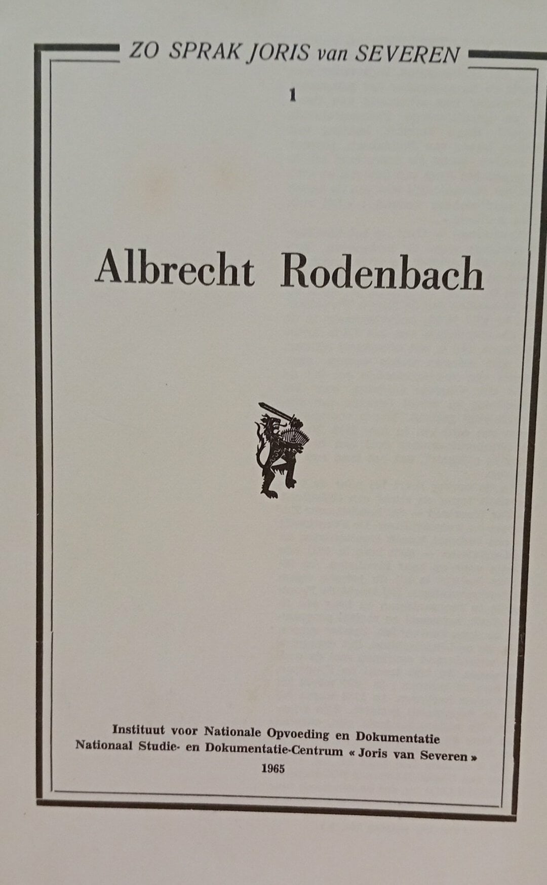 Zo sprak Joris Van Severen over Albrecht Rodenbach - uitgave 1965 / 20 blz